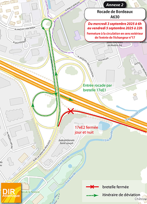 Cette étape sera précédée par la fermeture d’une des bretelles d’entrée sur la rocade extérieure à l’échangeur 17 à compter du mercredi 3 septembre 6h (annexe 2).