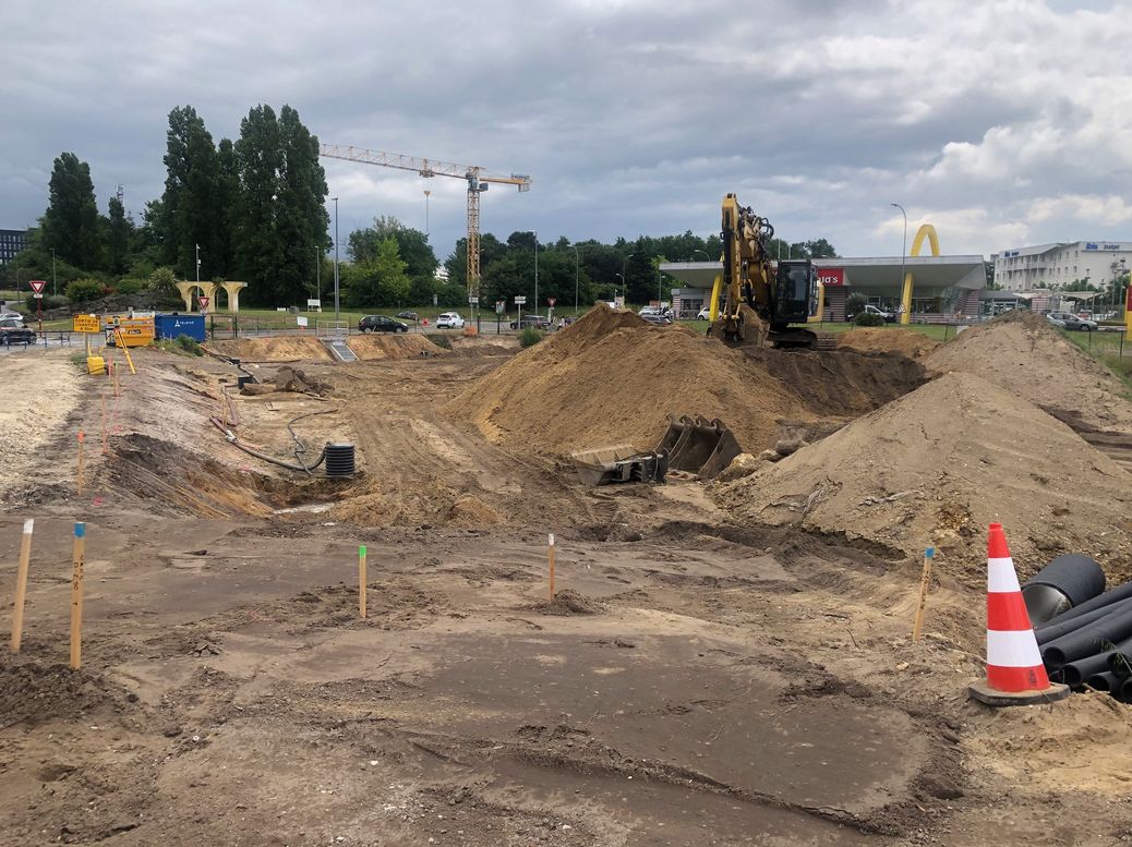 - au niveau du bassin : décapage de la terre végétale et déblais, réalisation de l’assainissement en entrée de bassin et pose de l’ouvrage de sortie ;